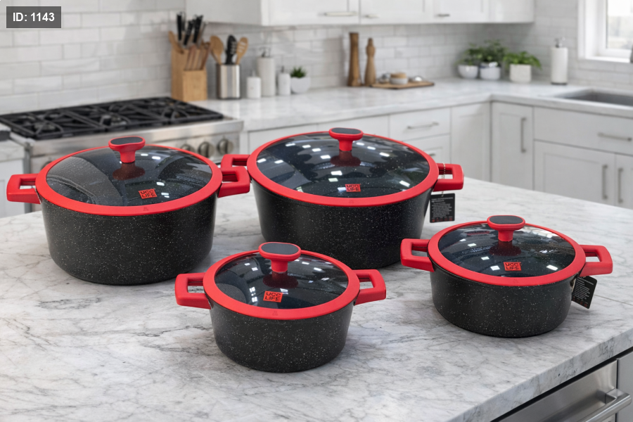 طقم طناجر UCC LIFE ٨ قطع احمر
