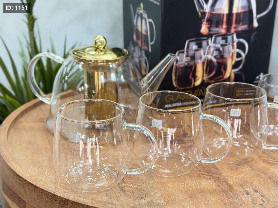 طقم بكرج شاي زجاج حراري food appeal